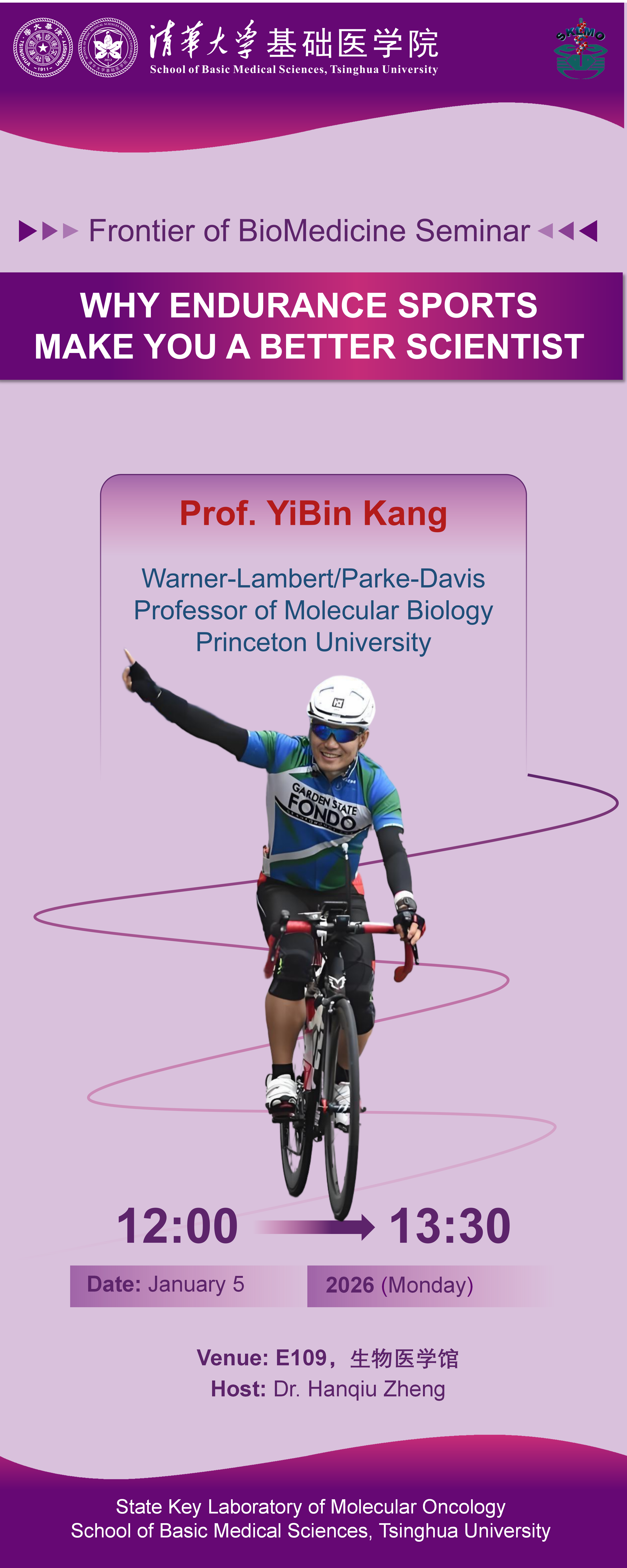 Time: January 5, 2026, 12:00–13:30Speaker: Professor YiBin KangTopic: Why Endurance Sports Make You a Better ScientistVenue: Conference Room E109, Biomedical Hall, Tsinghua University
