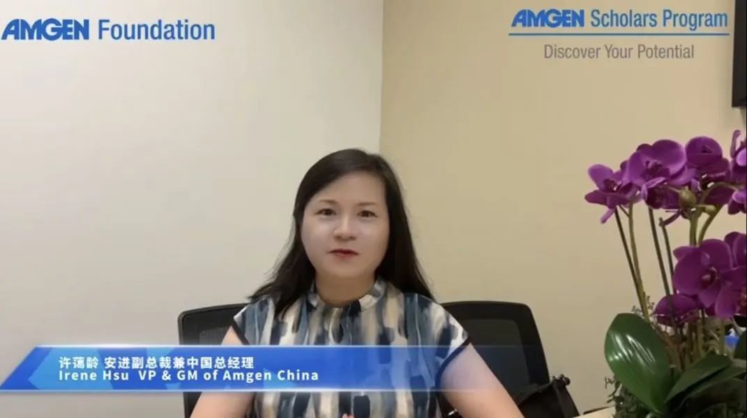 在开幕式上,安进副总裁兼中国总经理Irene Hsu在视频中对项目开幕表示了热烈的祝贺,对24位入选学者表示诚挚的欢迎,希望各位学者在项目中都能有所收获,不断挖掘自己的潜能,找到未来的发展方向。
