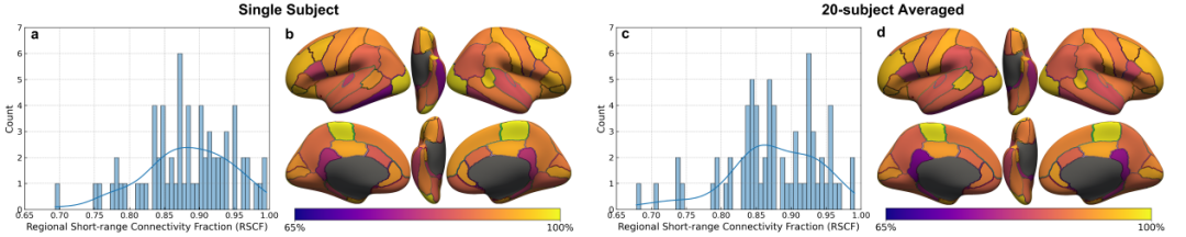 基于0.96毫米高分辨率数据与优化后的追踪流程,本研究构建了首个人类脑区SAF比例图谱,进一步证实了SAF在脑连接中的主导地位,为理解脑连接架构提供了新的基准工具。