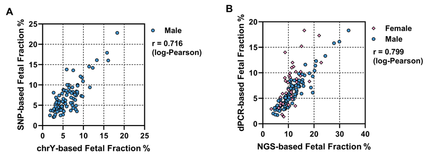 突破性别限制的双轨检测策略:同时检测9个常染色体SNP位点和3个Y染色体位点,男性胎儿使用Y染色体法定量(精度更高),女性胎儿使用SNP法定量。
