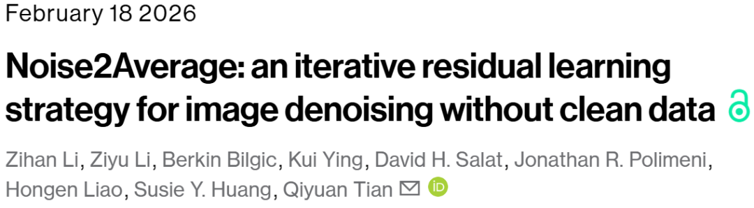 近日,清华大学生物医学工程学院田启源课题组脑影像实验室、廖洪恩课题组微创诊疗与三维影像实验室,在《影像神经科学》(Imaging Neuroscience)期刊发表题为 “一种不依赖无噪声参考数据的迭代残差学习图像降噪策略”(Noise2Average: an iterative residual learning strategy for image denoising without clean data)的研究论文。