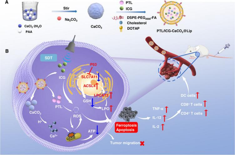 声动力疗法是一种新兴的诱导肿瘤细胞死亡的非侵入性方法,但实体瘤的缺氧微环境限制了声动力疗法的治疗效果,导致单一的声动力疗法治疗效果不...