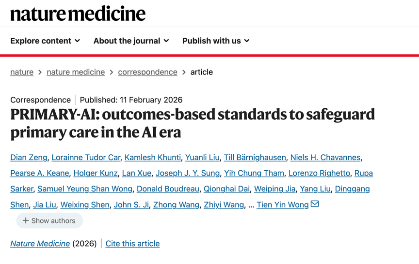 黄天荫团队牵头发布 PRIMARY-AI 国际倡议